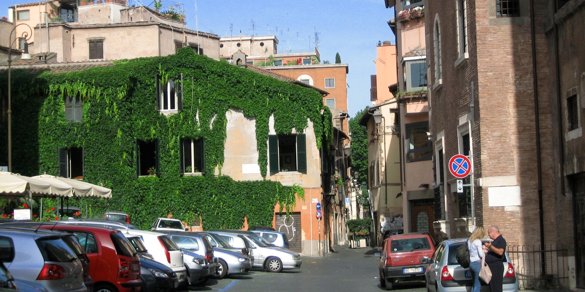 Thanks to the wealth of a limited number of noble families in the Renaissance and Baroque periods, and the end of that wealth in the last century when they opted to give up or lose their vast tracts of urban countryside, Rome has more green space per capita then any other European capital. Future entries in the blog will explore these “villas” (Italian for a public park, not just a private rural or suburban residential property). But nature being tenacious and pervasive, sometimes it just takes over. In addition to visual beauty this seasonal vegetation on buildings can go a long way in protecting walls from direct sunlight which would otherwise gradually traverse masonry walls to radiate heat to interior rooms. And since many creeping plants either drop their leaves or can be seriously pruned back in the winter, the walls tend to be exposed to the sun when the warmth is desired. So that’s what’s right with this picture.