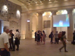 This week, as part of the Festa dell’Architettura, the work of nine university programs (members of AACUPI) and an equal number of architects from the various foreign academies has been on display in an exhibit entitled Foreign Architects Rome (FAR) at the Temple of Hadrian. The site is prestigious, to say the least, standing as a monument to the deified emperor responsible for the Pantheon just down the street. Originally built in about 140 by Hadrian’s adopted son and successor, Antoninus Pius, the building has served in recent decades as the site of Napoleon’s offices, the city of Rome’s stock exchange, and currently the chamber of commerce exhibition center.