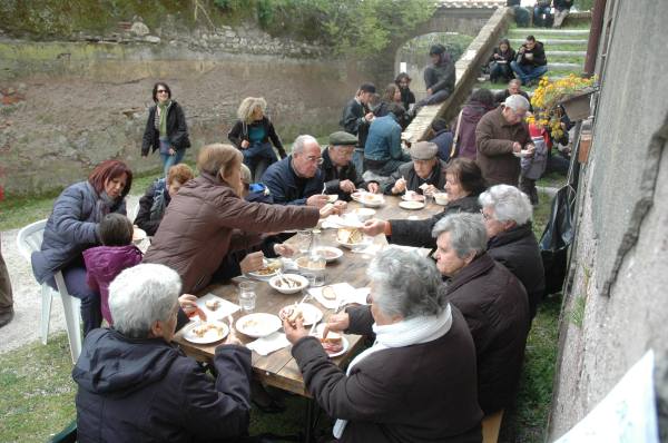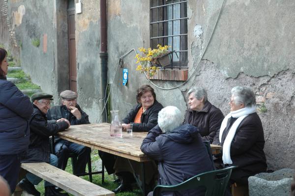 Castel di Guido is comprised of several thousand hectares of farmland surrounding a “borgata agricola”, a farming village which still boasts a public school, a day-care center, a public health clinic, a community center, a museum of rural culture and more. Founded by the church-run Santo Spirito hospital to provide food for patients, it became Italian after the unification of Italy 150 years ago and is today faced with the threat of development. Instead of producing revenue for the city the property is actually costing Rome money to maintain, an absurdity which can only be blamed on ineffective management and confused priorities which see in land the promise of economic profit before food. The farm staff has been reduced to a fraction of what it was even 50 years ago but they still produce and sell the results in Rome at the weekend farmers market in Testaccio. We lunched on lentils and soup, local salamis and cheeses and good red wine (a deal at 6 euro per person contribution). We heard from some of the current and former farmworkers who are keeping alive the oral history of the farm. We viewed a video produced by the local associations with interviews and images of the women from the farm. The photos below do better justice to the encounter.