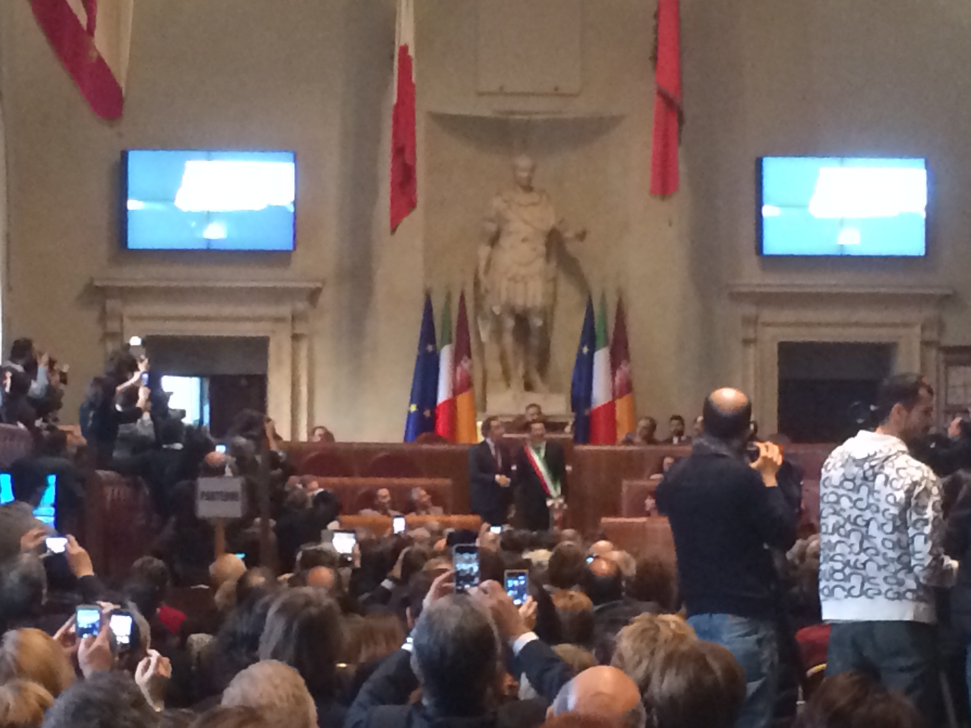 At the ceremony tonight to award Sorrentino honorary Roman citizenship, Carlo Verdone spoke eloquently of Rome’s state of “decomposition”, but also of how he believes Rome is always capable of resisting the decay into which it repeatedly falls. I was moved by Verdone’s words about the state of abandon of the Tiber and the importance of those of us who know how to love Rome, whether or not we were born here. Sorrentino, he pointed out, is just the latest in a long line of “foreign” directors who have shown Rome in a new poetic light.