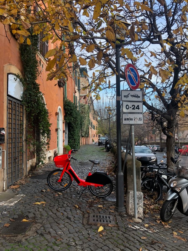 • Use free-floating bike rental like Jump bikes and Greta bikes and park them respectfully. The new trend in Rome is to use them as civic bollards to keep cars out of car-free zones since the city has never protected these areas.