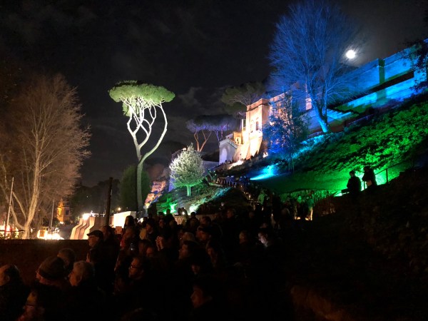 Finally I descended to Circus Maximus, admired the new lighting of the Palatine, and walked on to Bocca della Verità. Here I ran into Rome’s cultural commissioner and vice-mayor, Luca Bergamo, and congratulated him on the great event (mostly his initiative I hear.)